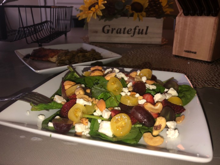 If you are wondering I myself haven’t reached my goal so you aren’t in this alone. I have the goal to become much more lean, and also gain the appropriate weight in the right place. What I like to do is cut proportions on half! I recently made dinner for myself that I’d like to share with you. My bbq chicken breast with organic pesto, spinach noodles pasta with a very berry veggie salad. I cut enough protein for myself with the noddles not being so much and a lot of salad because that is what my body burns fastest and will help me stay lean!